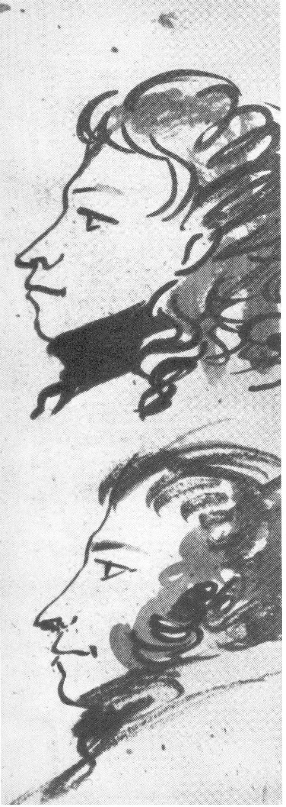размывкой. На верхнем портрете – Пушкин до ссылки, на нижнем – после