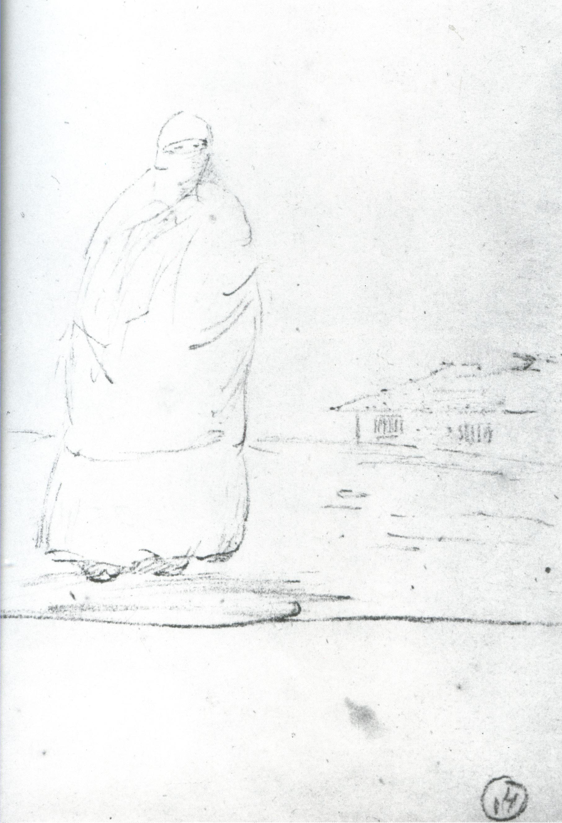 Мужская фигура с осликом. В кавказской записной книжке. 1852 г.